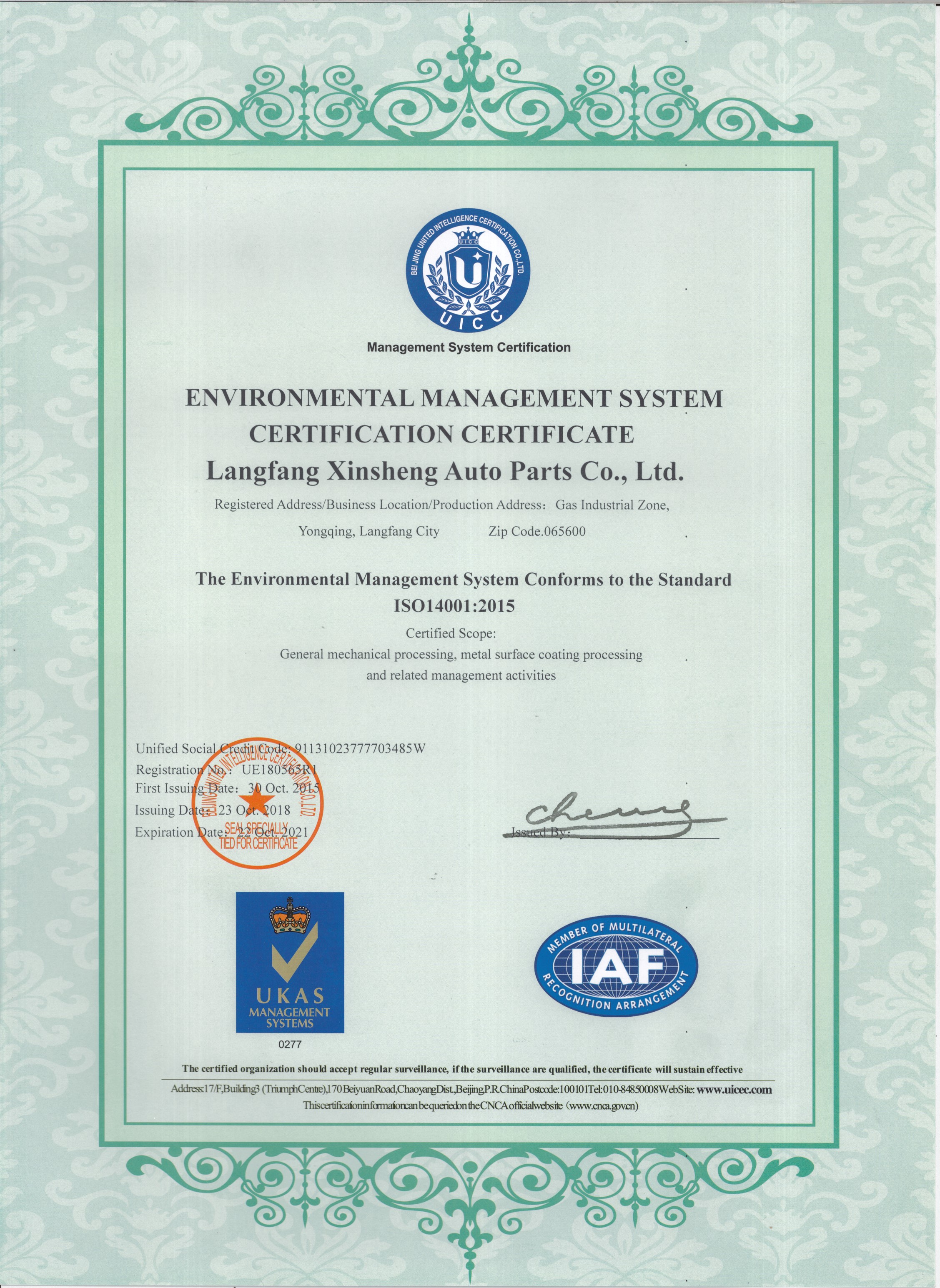 環(huán)境管理體系14001:2015英文